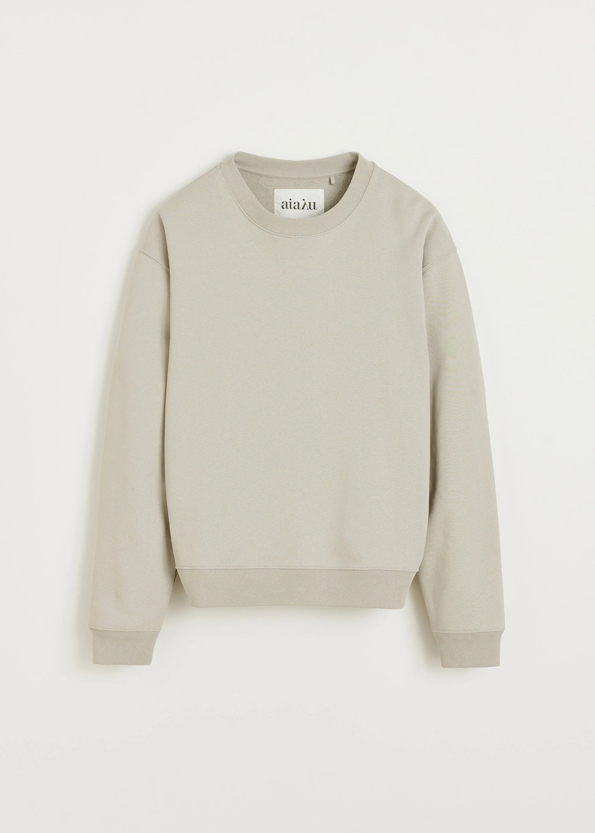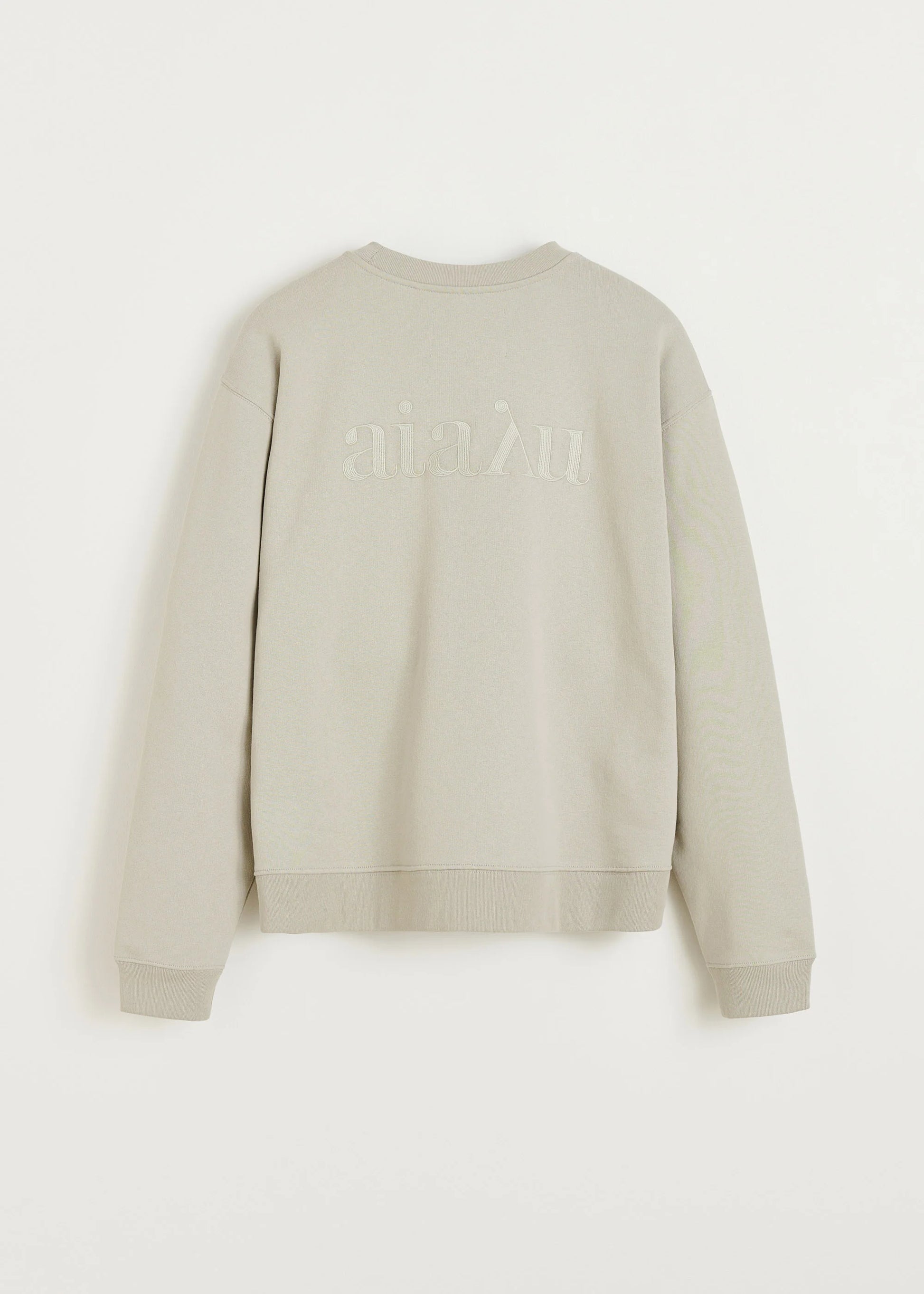 Aiayu skriver; A classic sweatshirt made from recycled organic cotton. Designed in an oversized, comfortable fit with a round neckline, dropped shoulders, wide ribbed cuffs and a tone-on-tone embroidered mega-logo, adding a stylish touch.