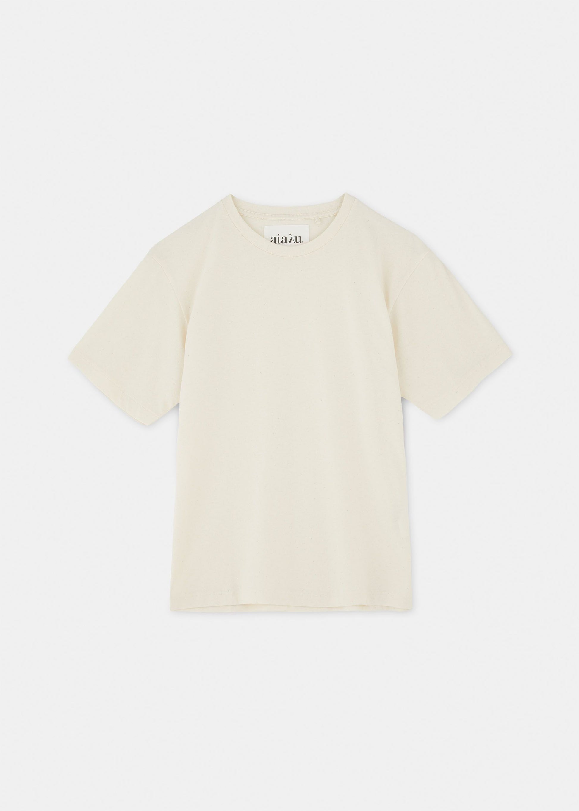 Aiayu skriver; Classic circular tee is a unisex tee with a regular straight fit, inspired by classic menswear t-shirts. European-made from soft, recycled, and certified organic cotton jersey, the t-shirt features a crewneck and short sleeves.