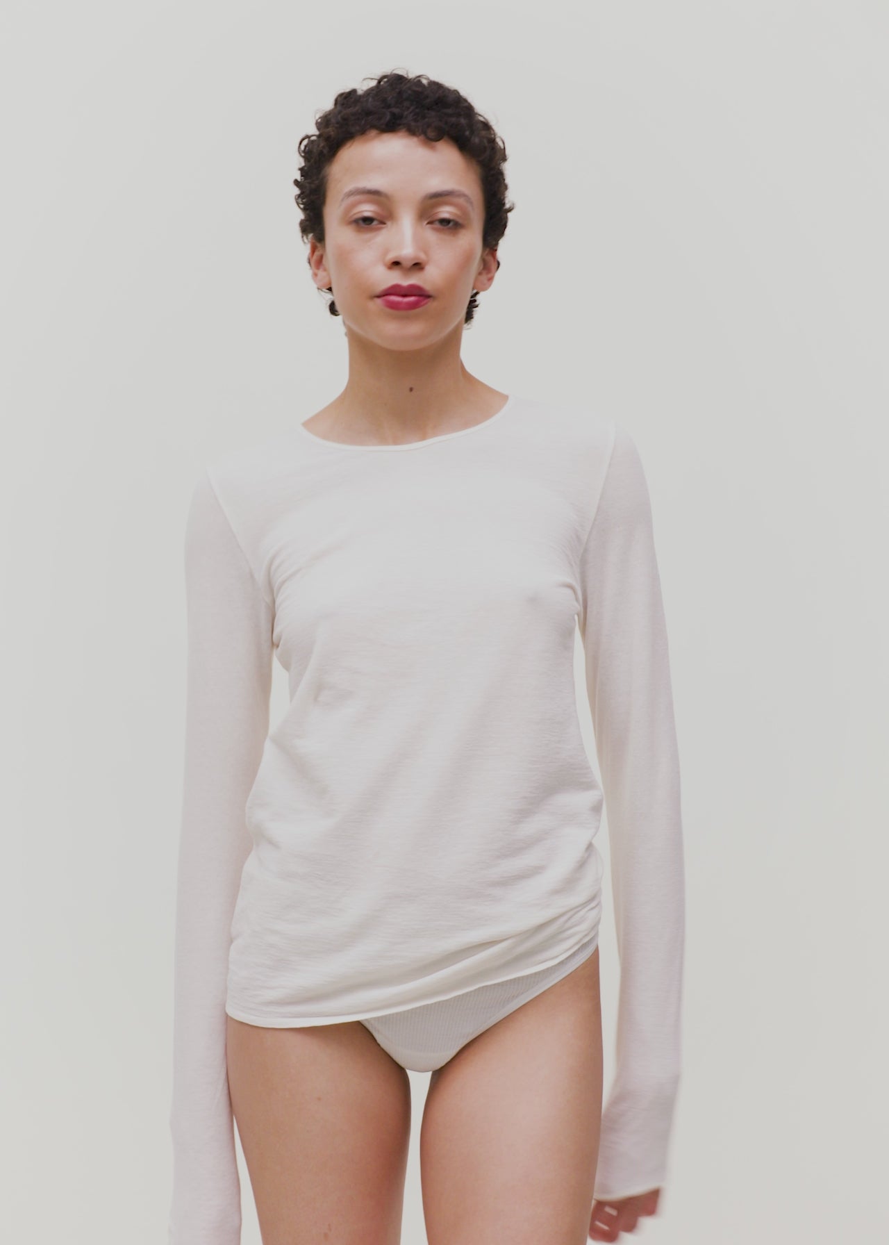 Aiayu skriver; The Gentle Long Sleeve is a classic basic top with a round neck, straight fit, and slim hems. Made for year-round layering.