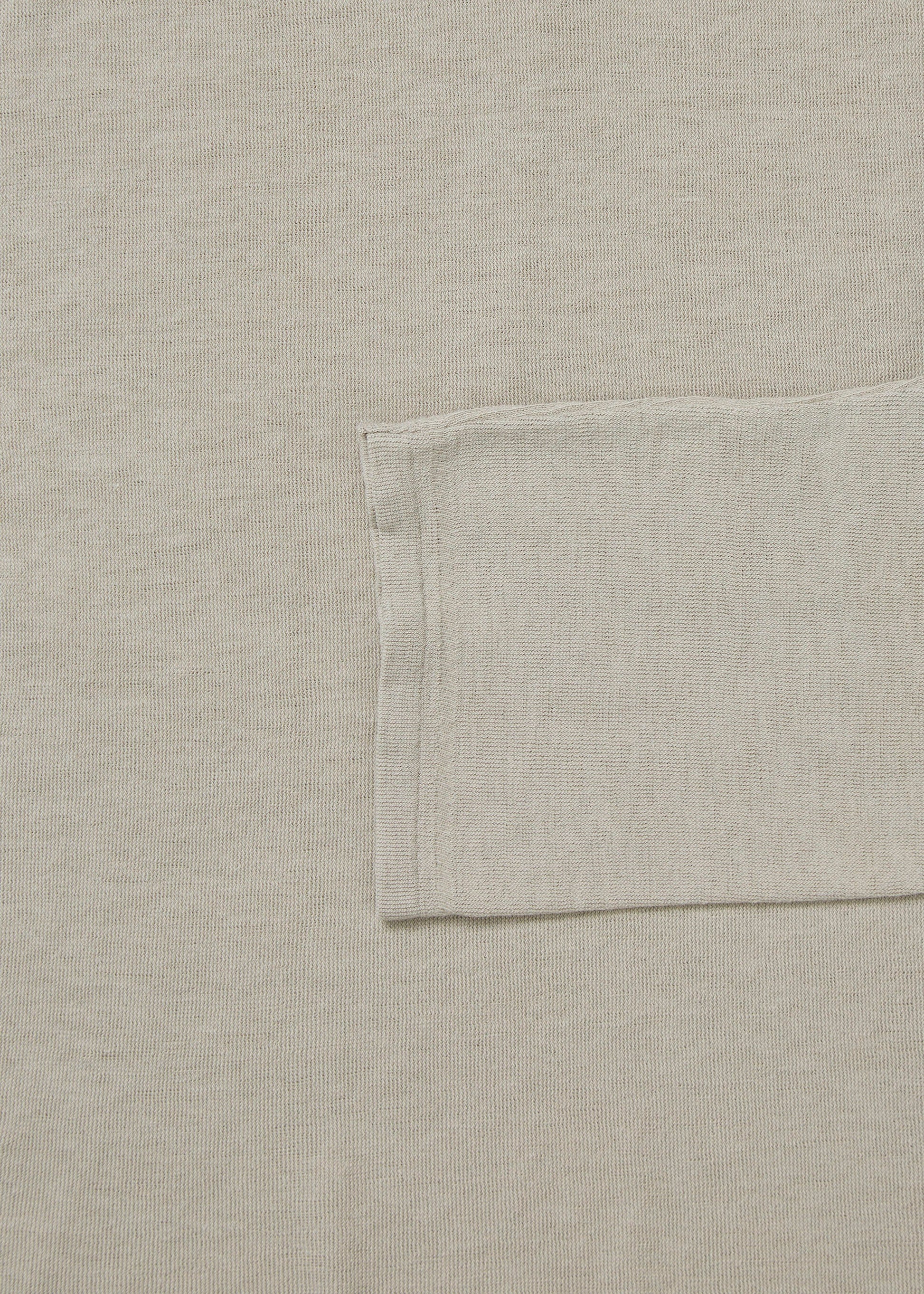 10% cashmere, 90% organic cotton, Made in Europe on circular knitting machines, minimizing production cut-offs and waste material.