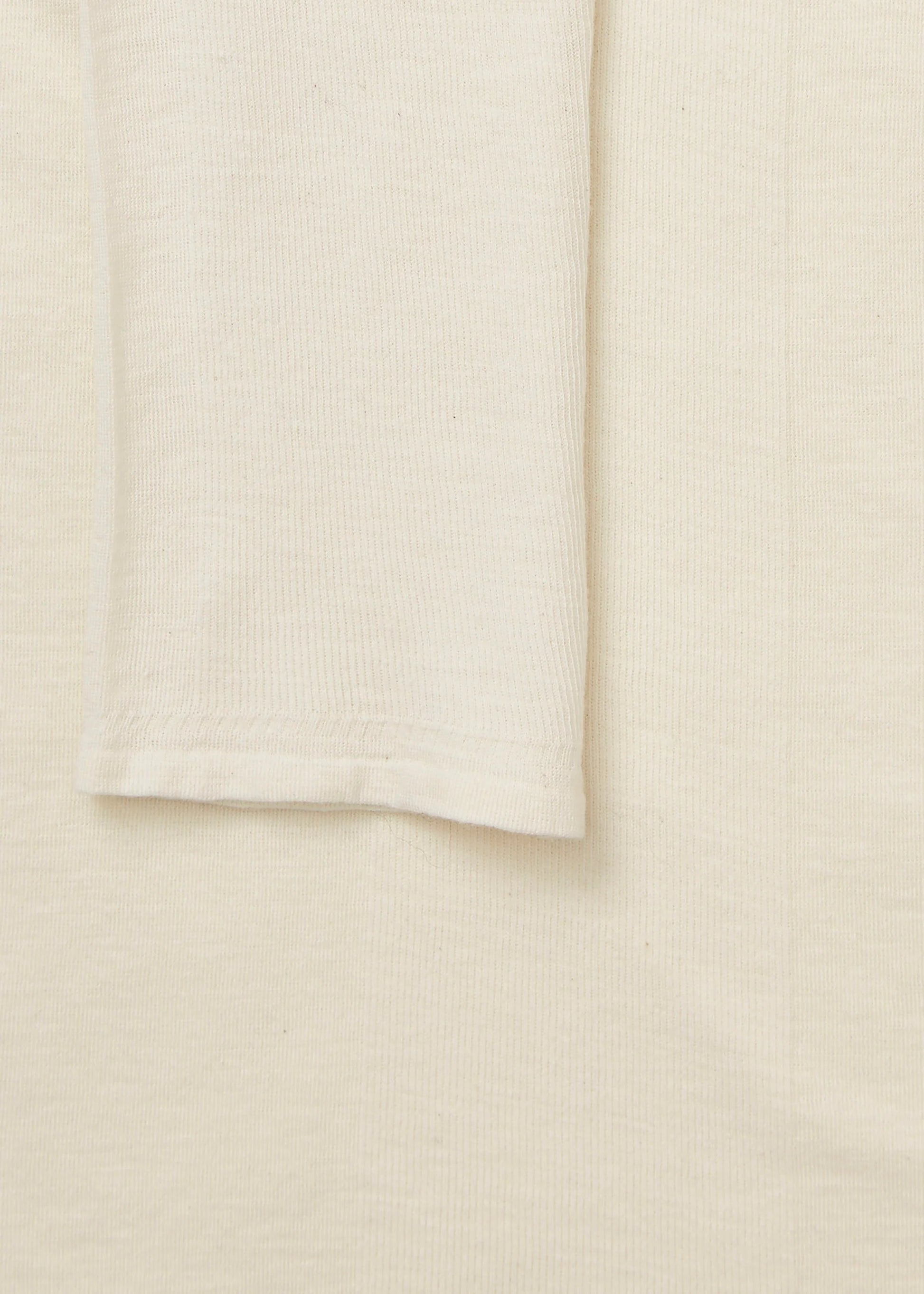 10% cashmere, 90% organic cotton, Made in Europe on circular knitting machines, minimizing production cut-offs and waste material.