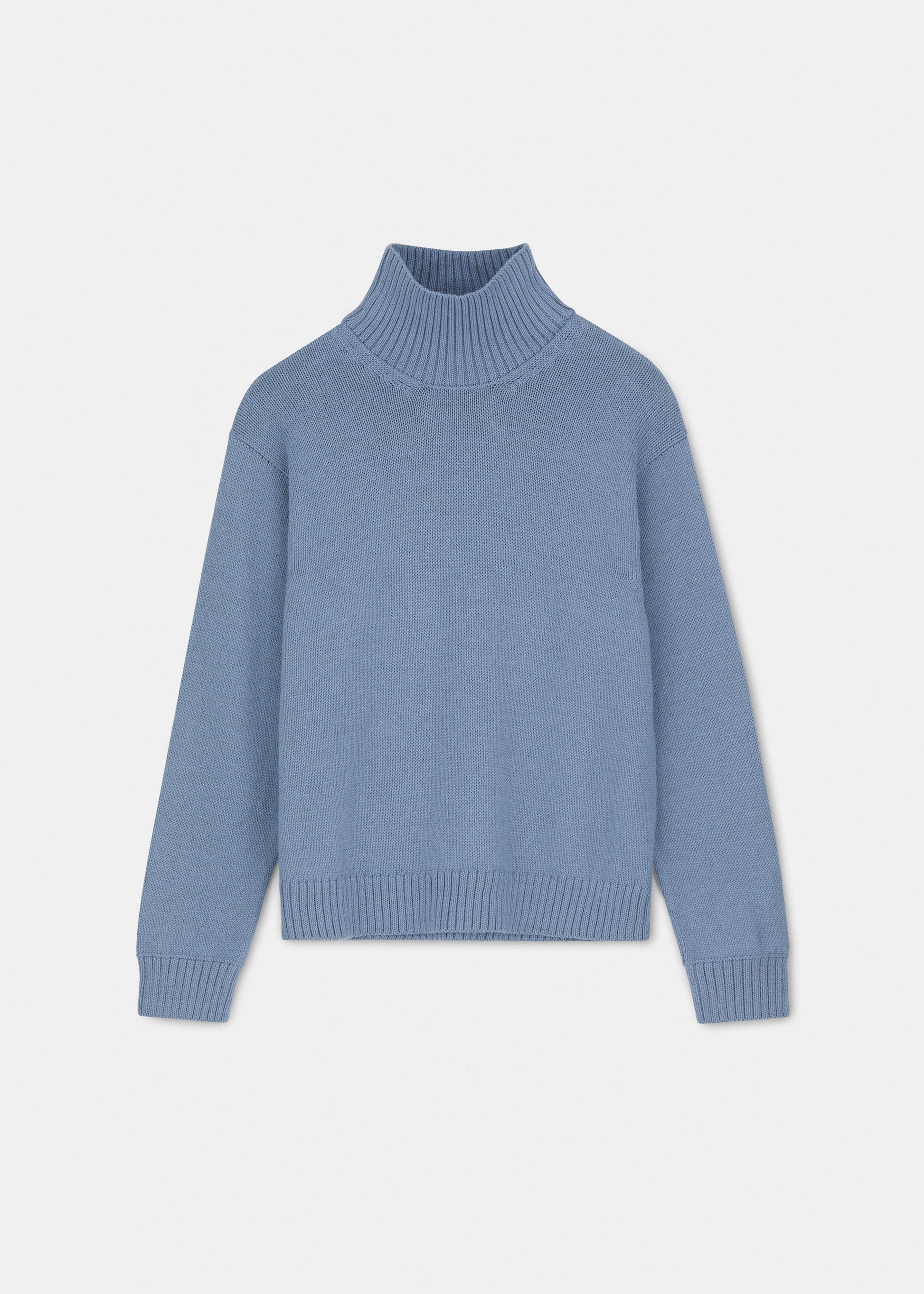 Aiayu skriver; A smooth-knitted sweater in a unique blend of llama- and highland wool with a timeless silhouette inspired by classic men's styles. Detailed with a characteristic high neck in rib knit, giving the sweater a relaxed and stylish look.