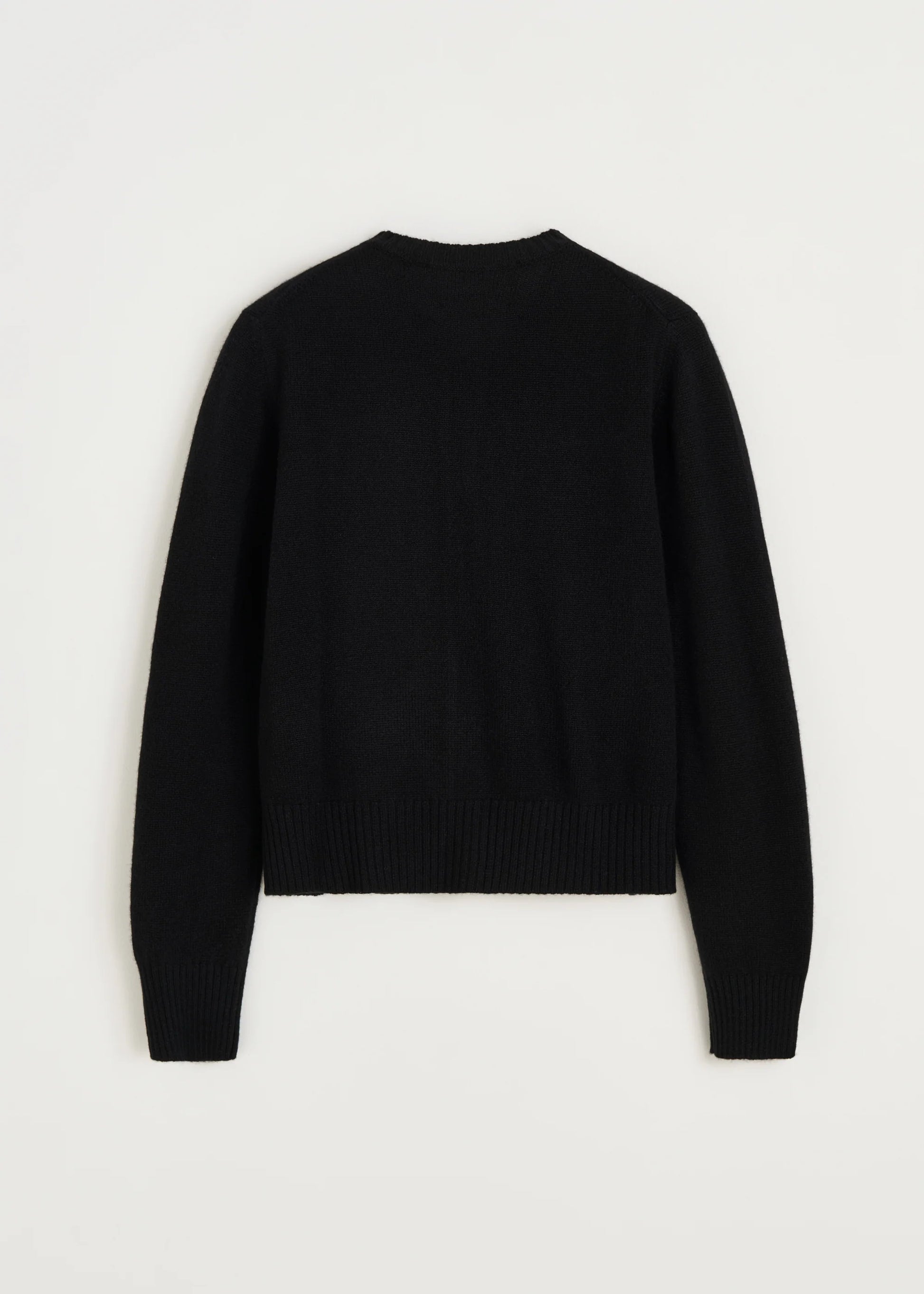 Aiayu skriver; A classic, refined cardigan made from exclusive cashmere. Designed in a regular fit with a feminine silhouette and detailed with an elegant round neckline, handmade horn buttons, and ribbed edges.