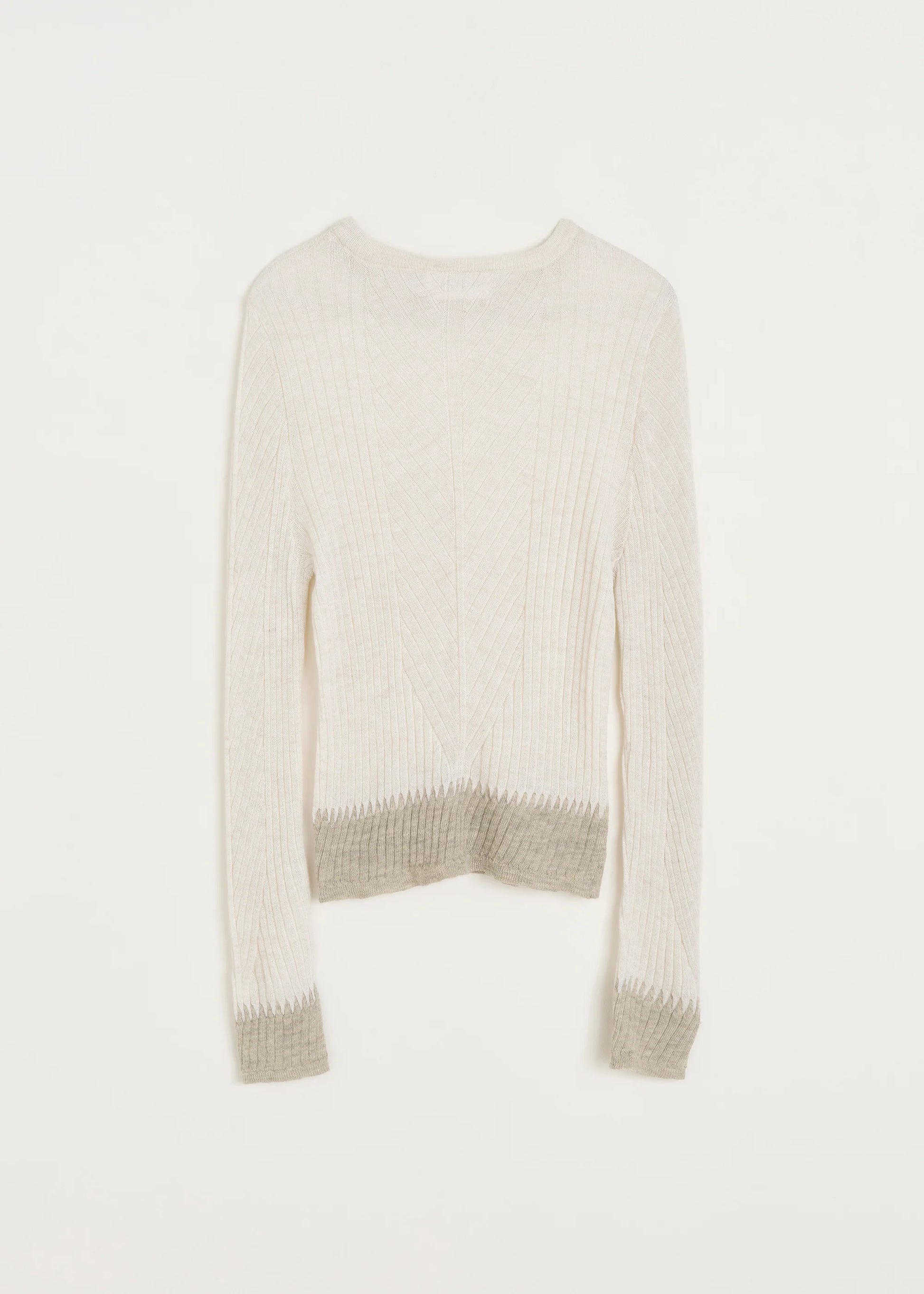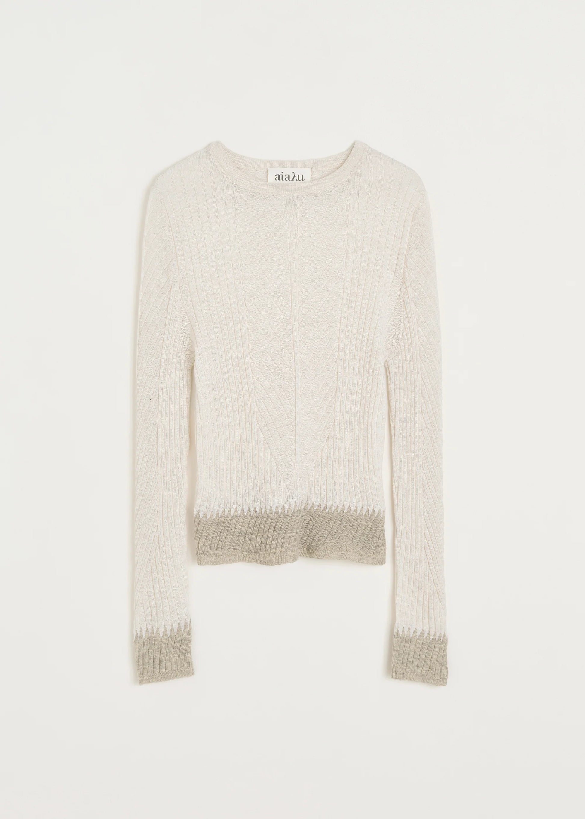 Aiayu skriver; An elegant blouse made from soft llama wool. Designed in a slim fit with a delicate rib knit, round neckline, and refined contrast coloured edges that add a sophisticated look.