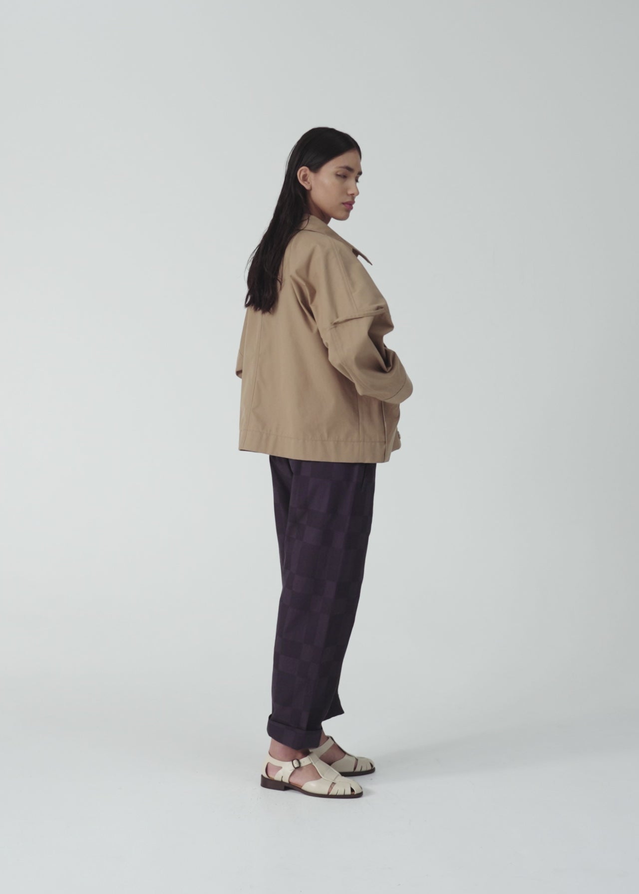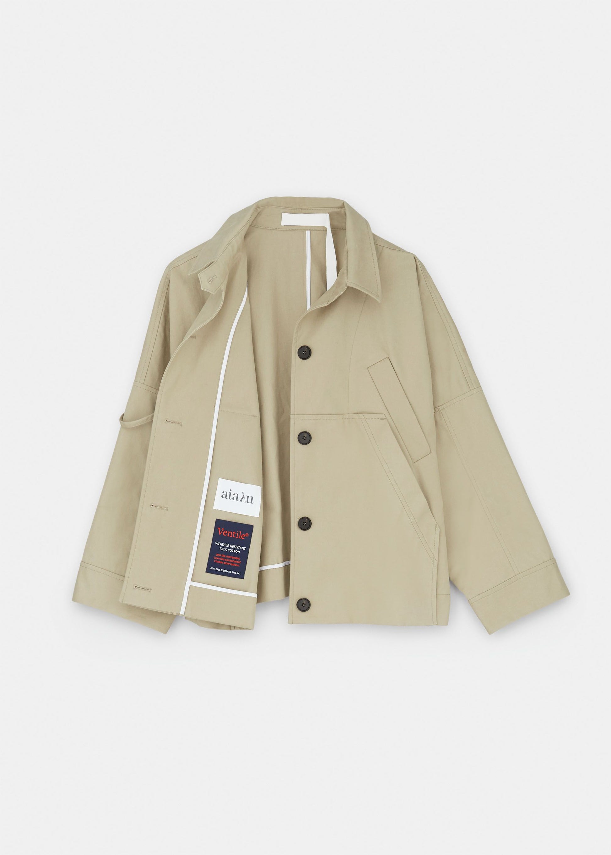 Aiayu skriver; JULES JACKET is an enduring favorite. Made from weather-resistant Ventile fabric, this piece is crafted for perennial wear with high side pockets, classic horn button closure, a boxy fit, and voluminous sleeves that allow for easy layering.