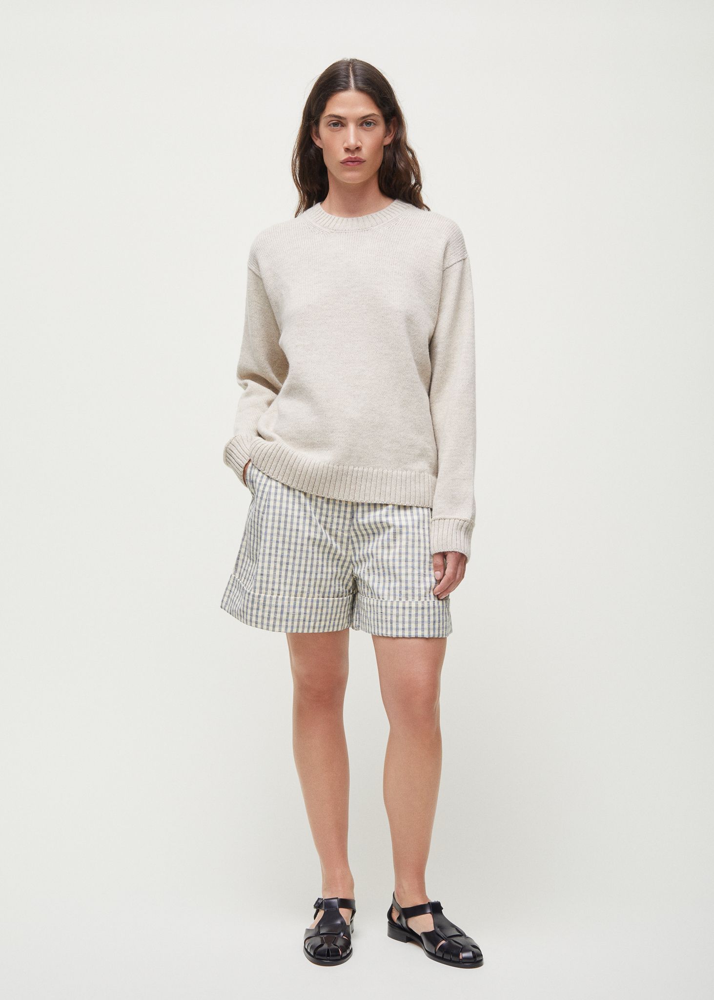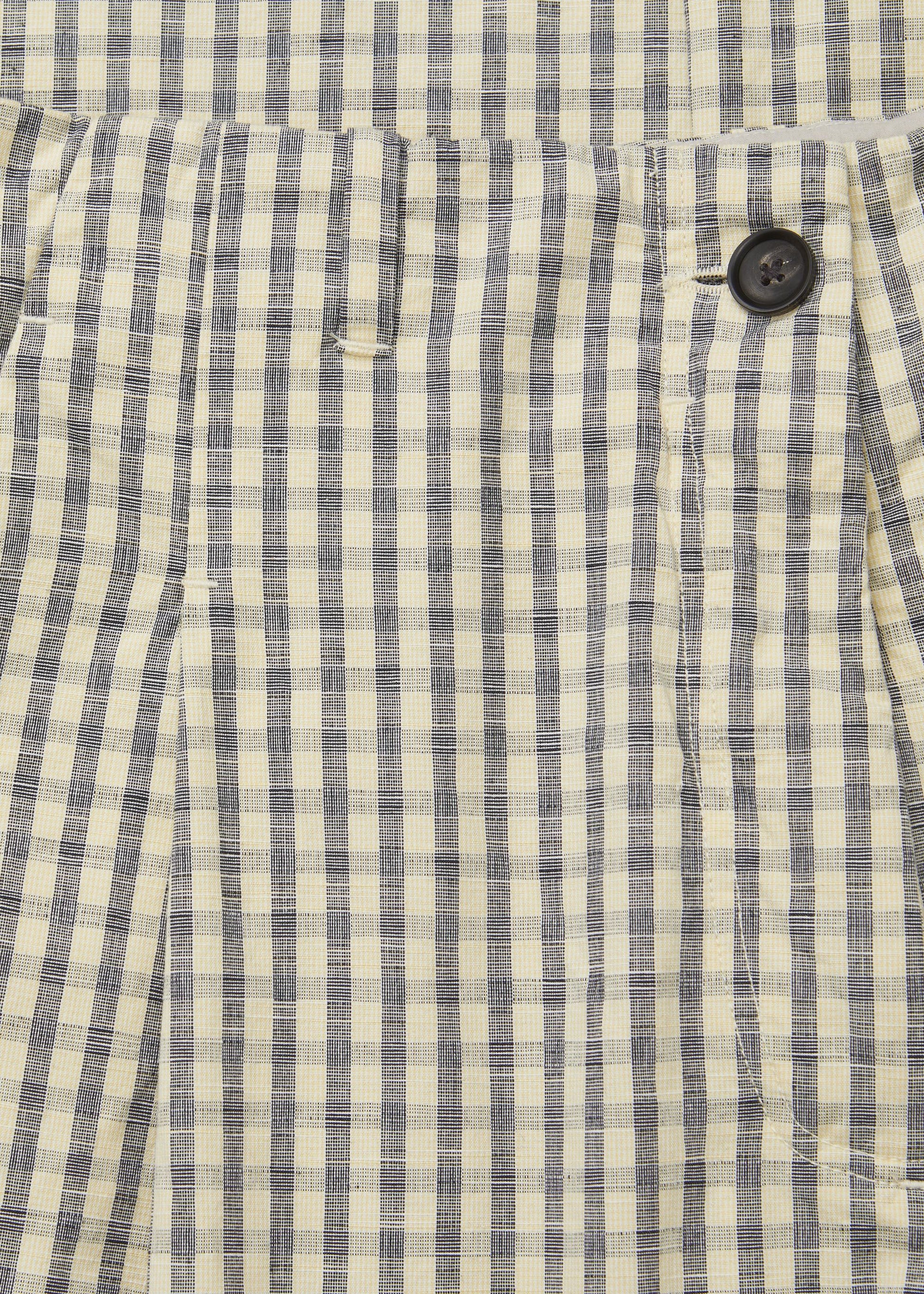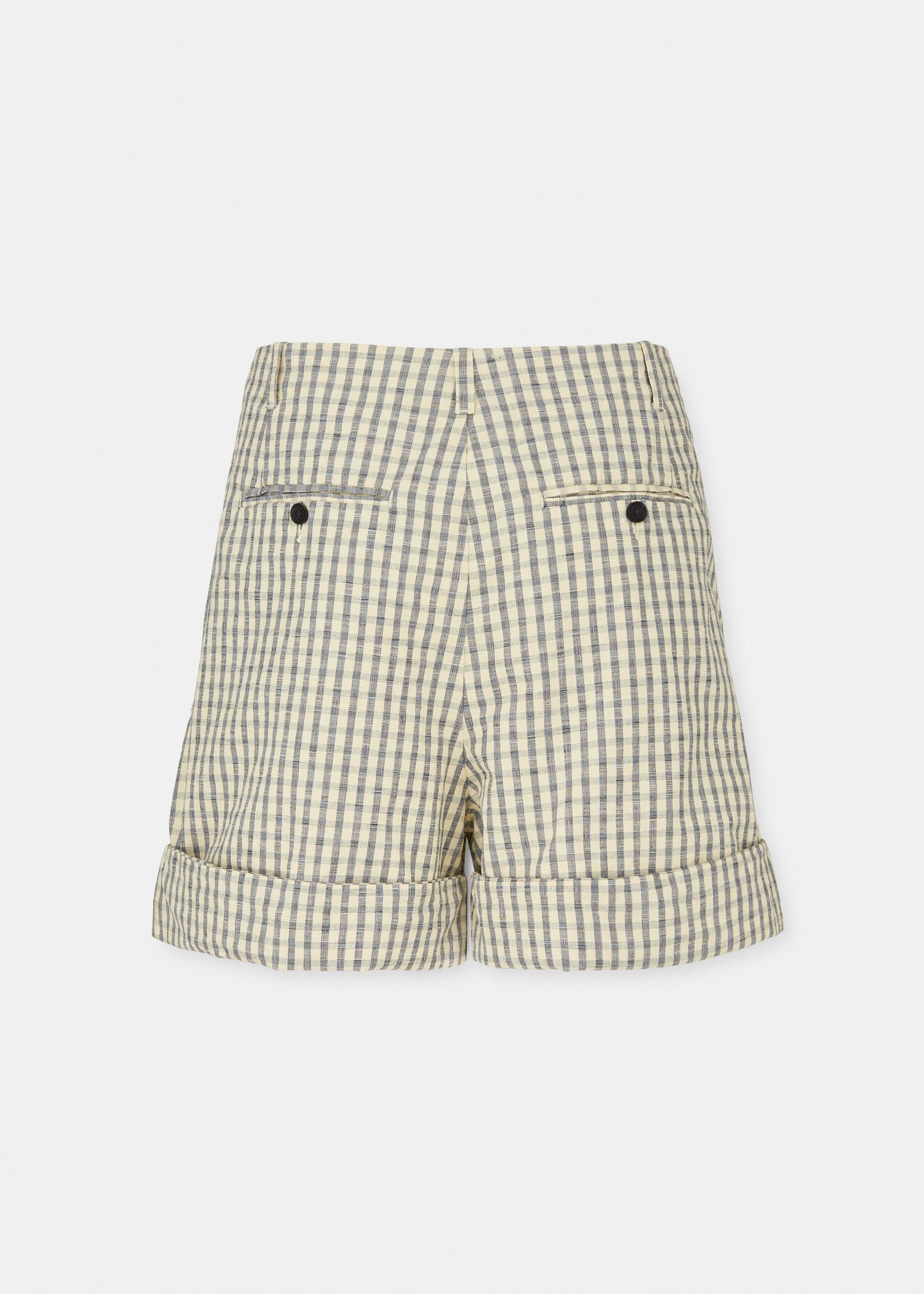Aiayu skriver; A loose fit, semi-tailored shorts with neat front pleats. Constructed with a self-extended waistband, folded hem, and buttoned back pockets. Lee Shorts Check is made in 100 % organic Chetna cotton slub quality with a structured feel. Pair with Ashly shirt check for a coordinated look.