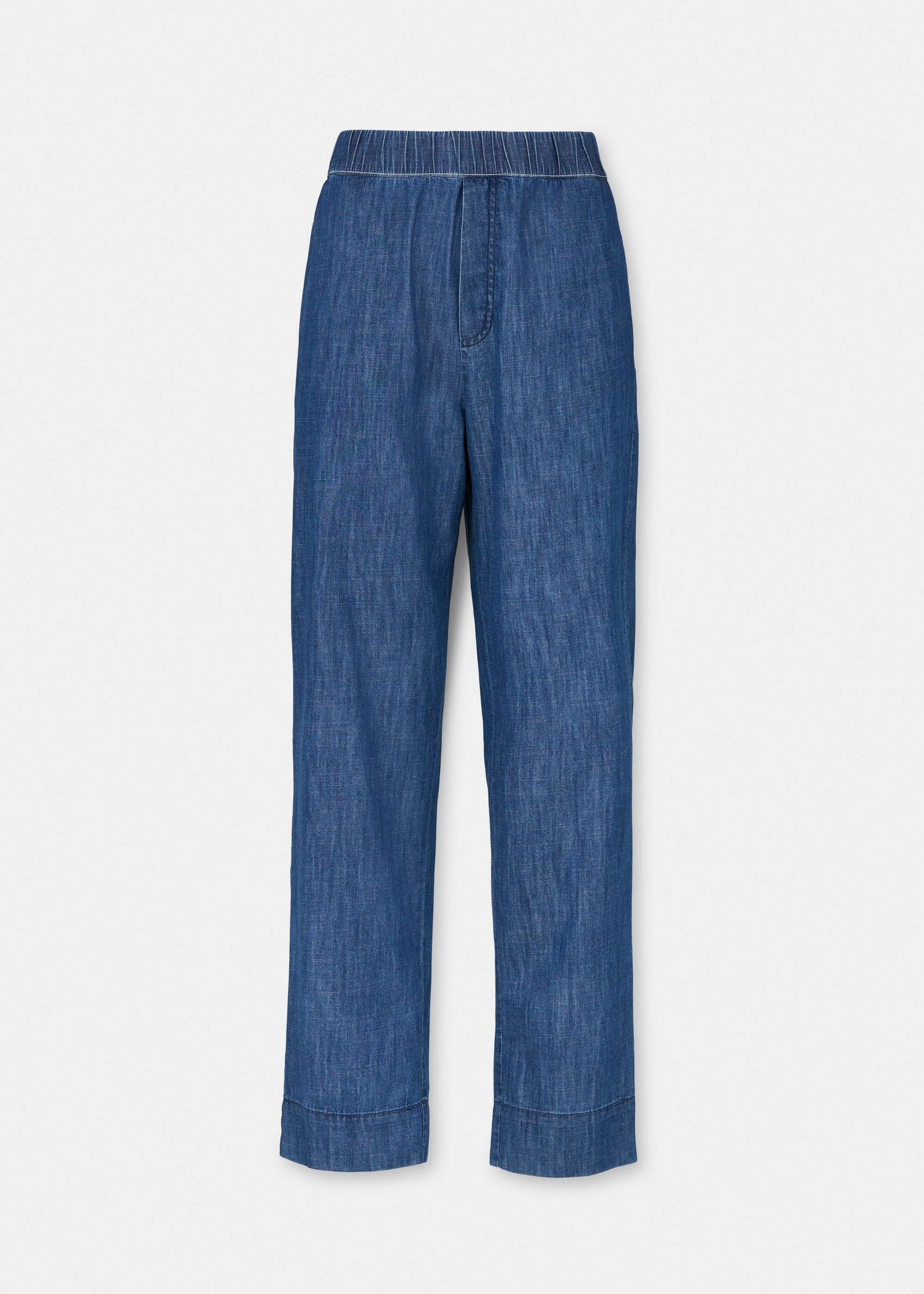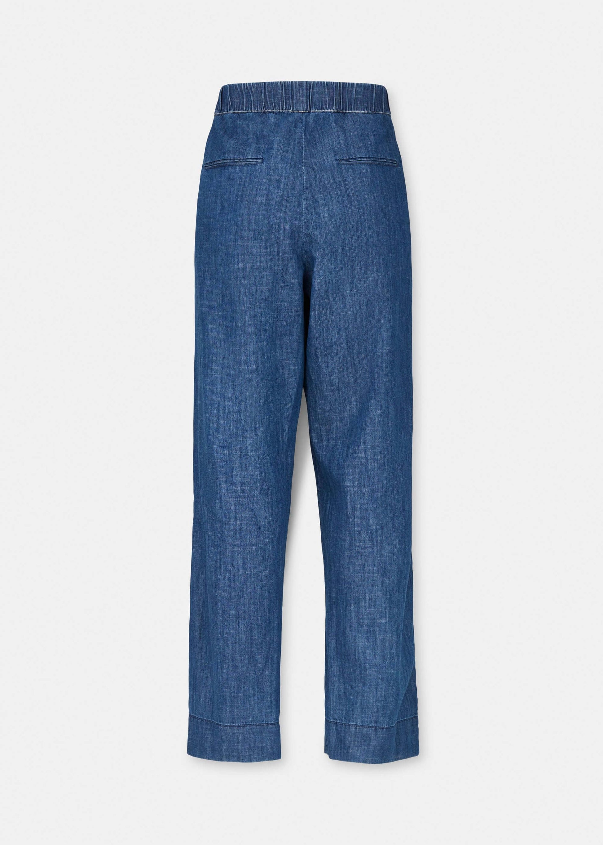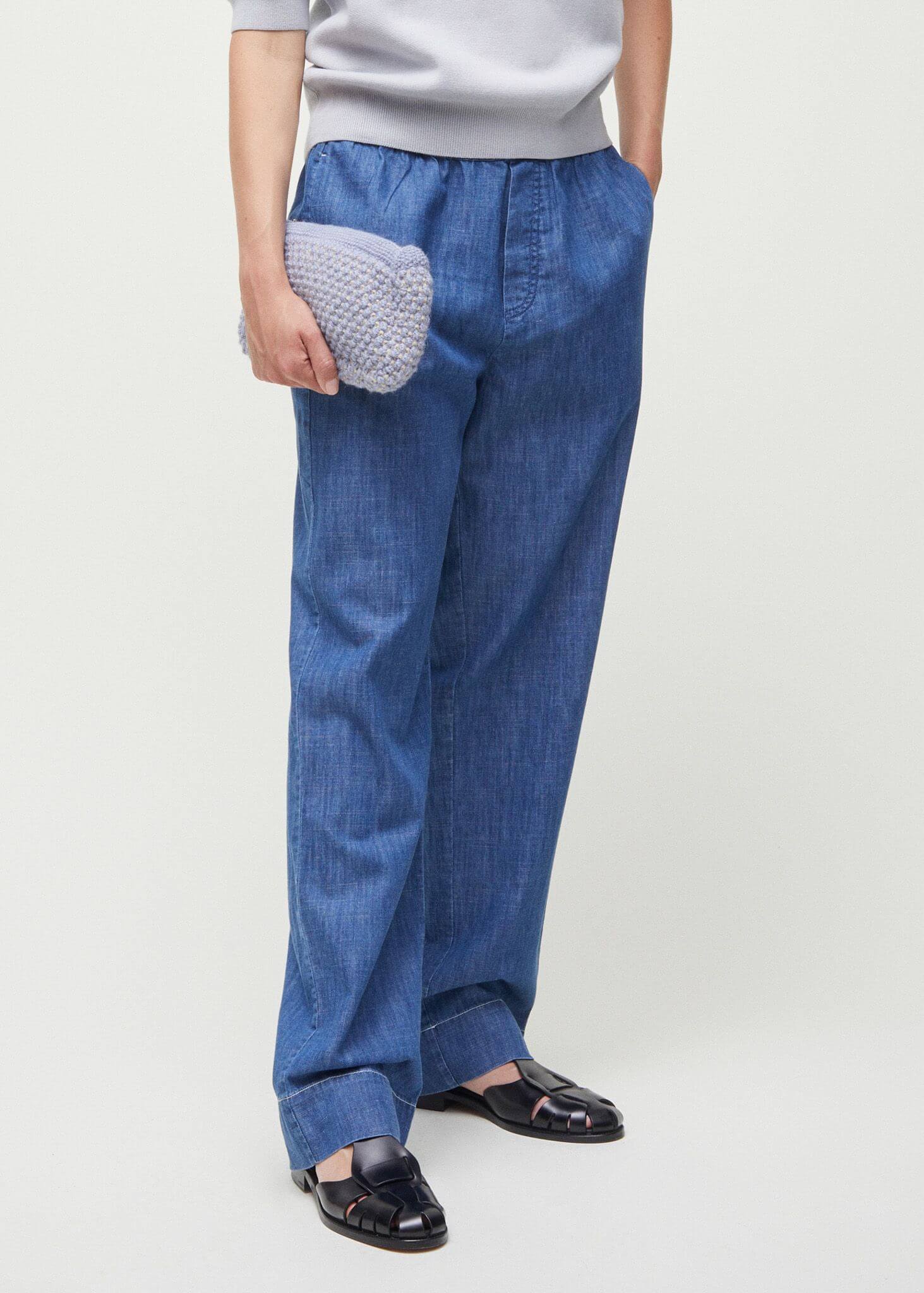 Aiayu skriver; Miles Pant Denim is a casual, boyfriend inspired style. This version of Miles Pant comes in a soft and light, denim-inspired quality made from 100% organic Chetna cotton. The pants feature an elastic waistband for a comfortable fit, straight legs and jetted side pockets. Wear it with Lynette Shirt Denim as a set, or style it to your liking.