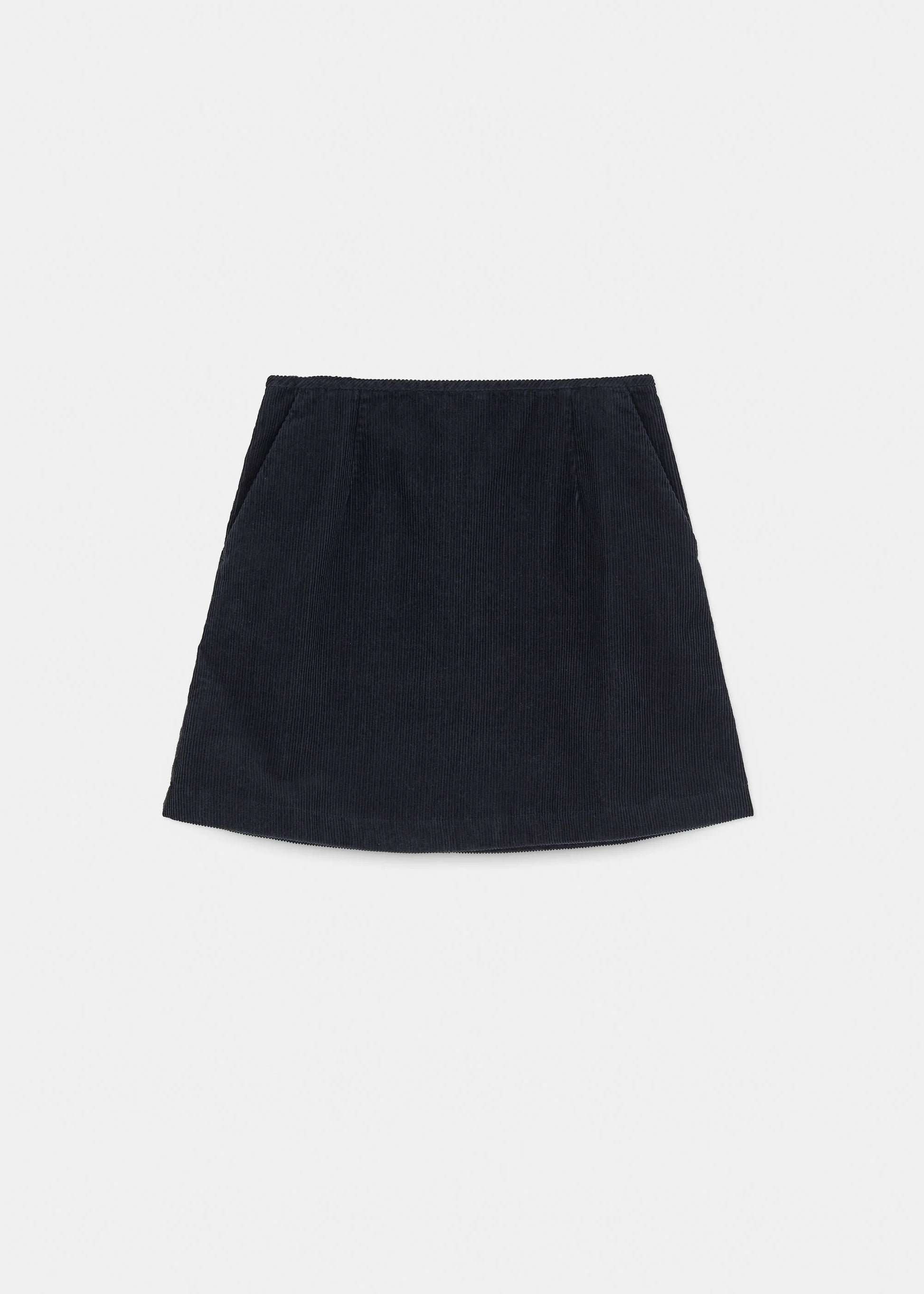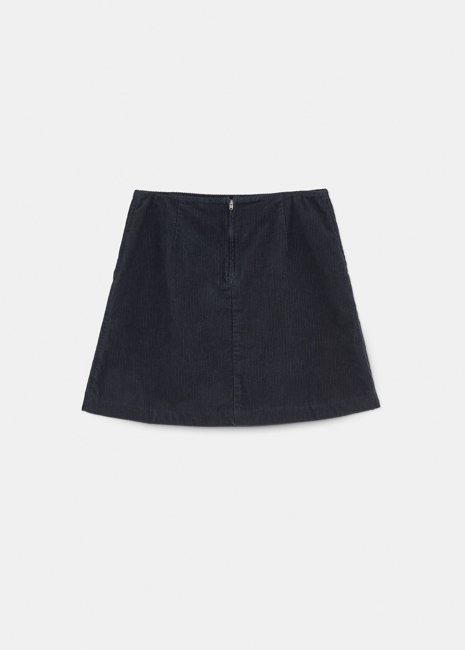 Aiayu skriver; A classic A-line corduroy mini skirt with a nostalgic 70s look. The skirt is made from organic, Indian cotton corduroy and detailed with a zip closure at the back and delicate slant pockets.