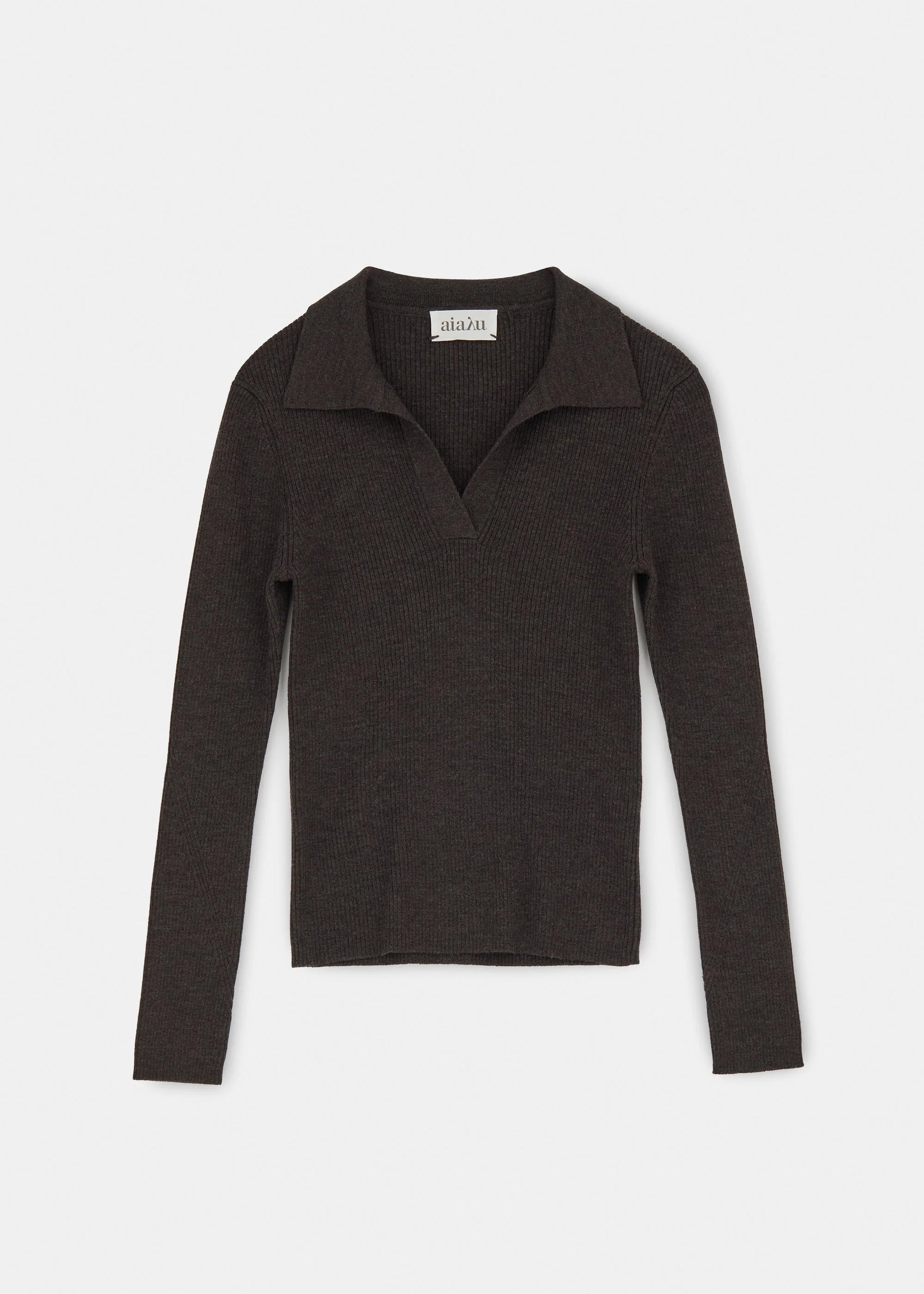 Aiayu "Noa wool polo blouse" Dark Brown Melange