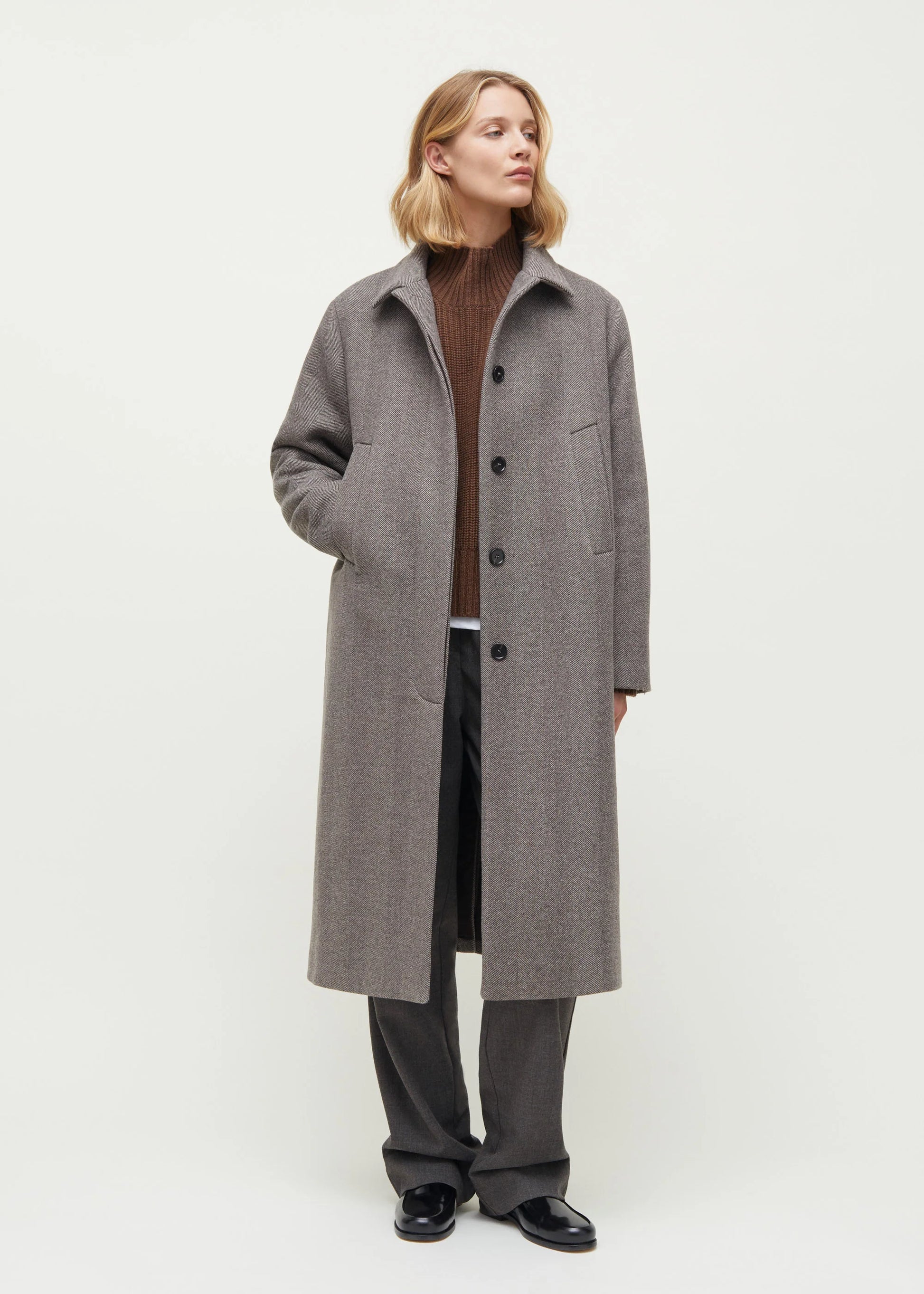 Regular fit. True to size - we recommend choosing your normal size. The coat has a long, straight silhouette.