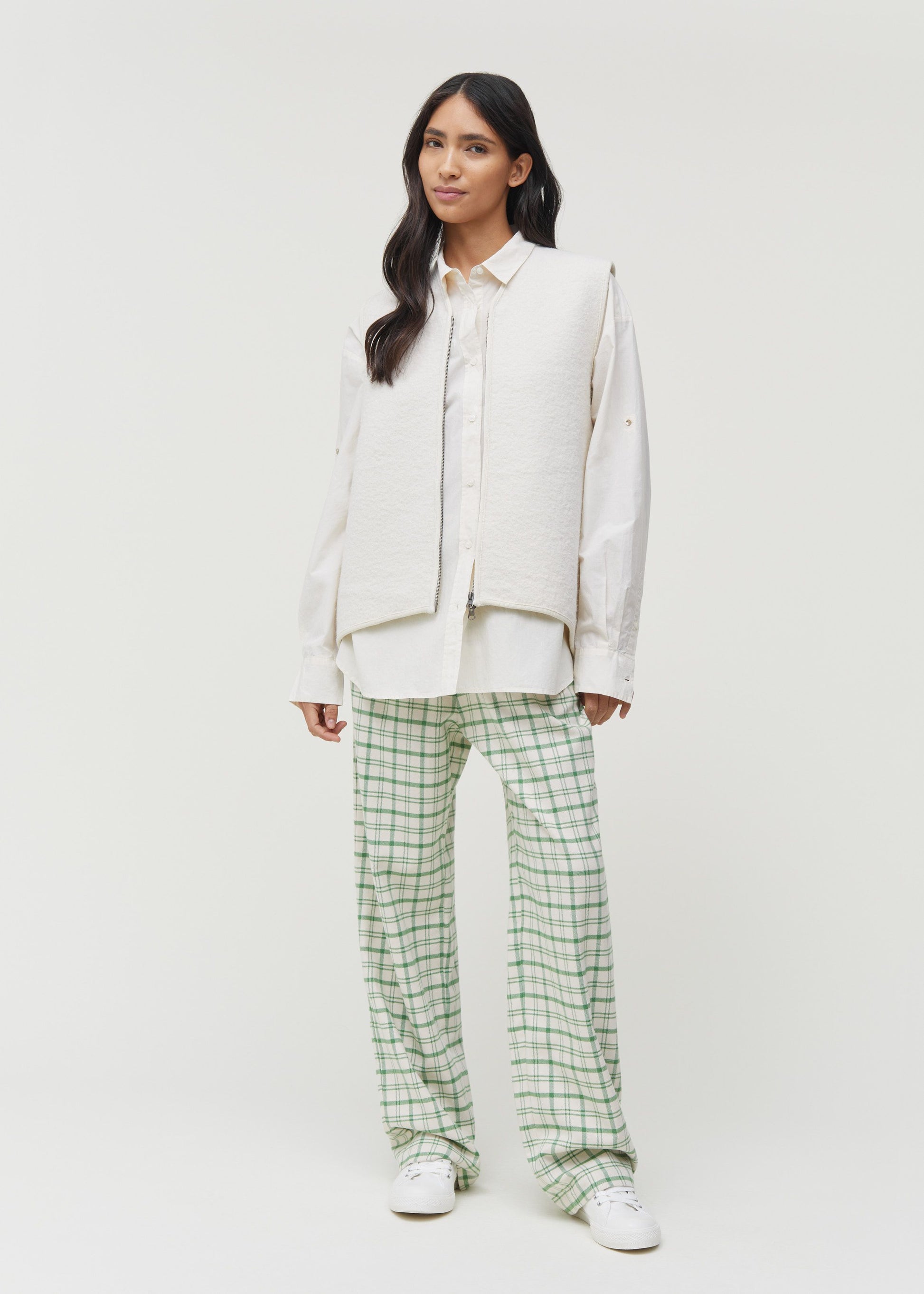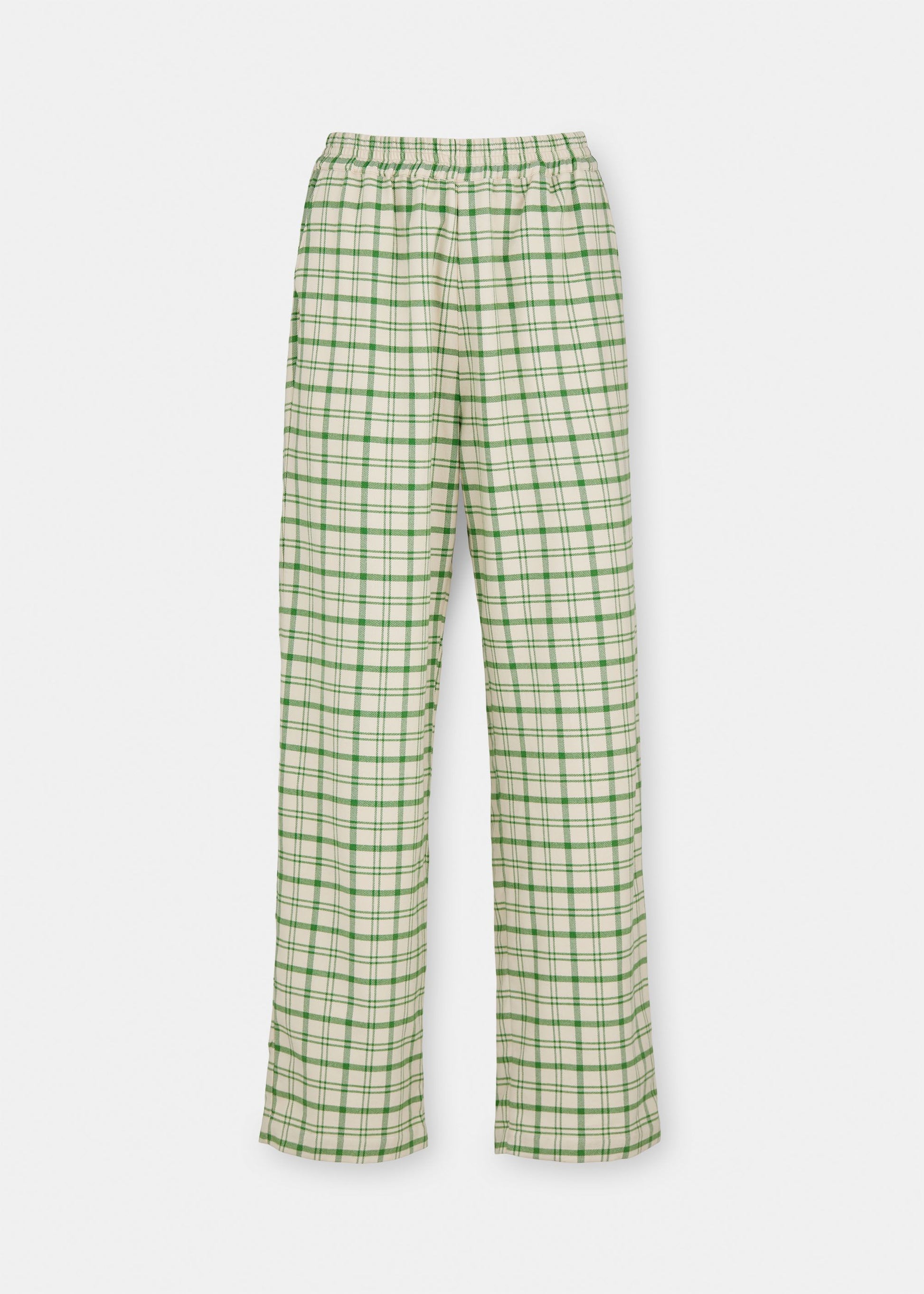 Aiayu skriver; Pablo is a casual pant made from brushed organic cotton flannel that is exceptionally soft and comfortable. Flattering high waist fit with straight, full-length legs, back pockets, and a flexible elastic waist. Functional side pockets for easy wear.