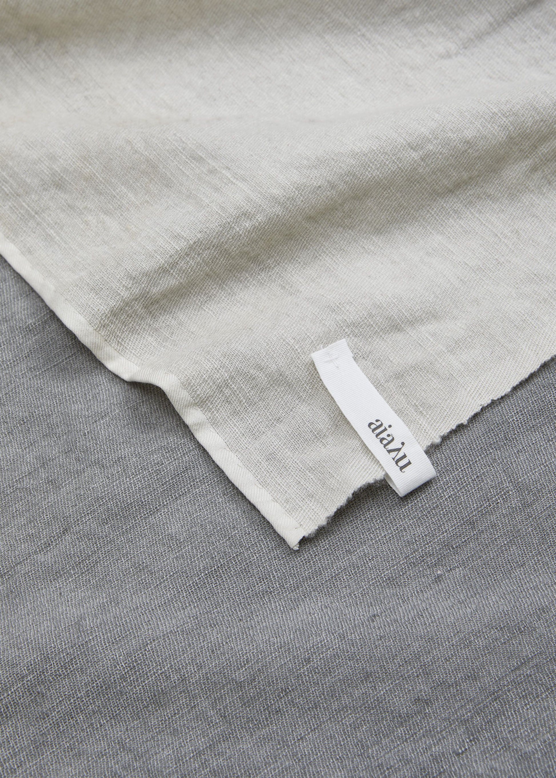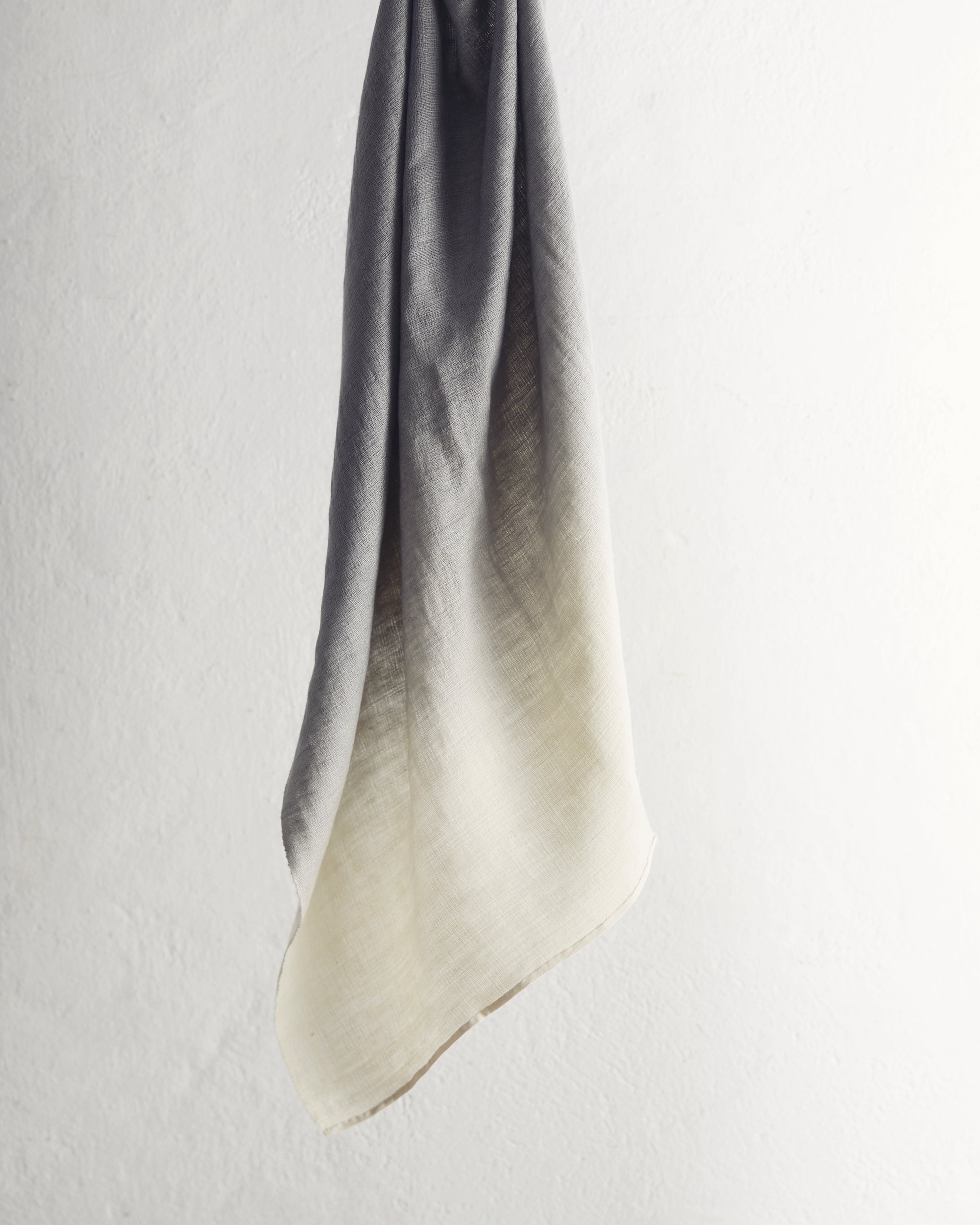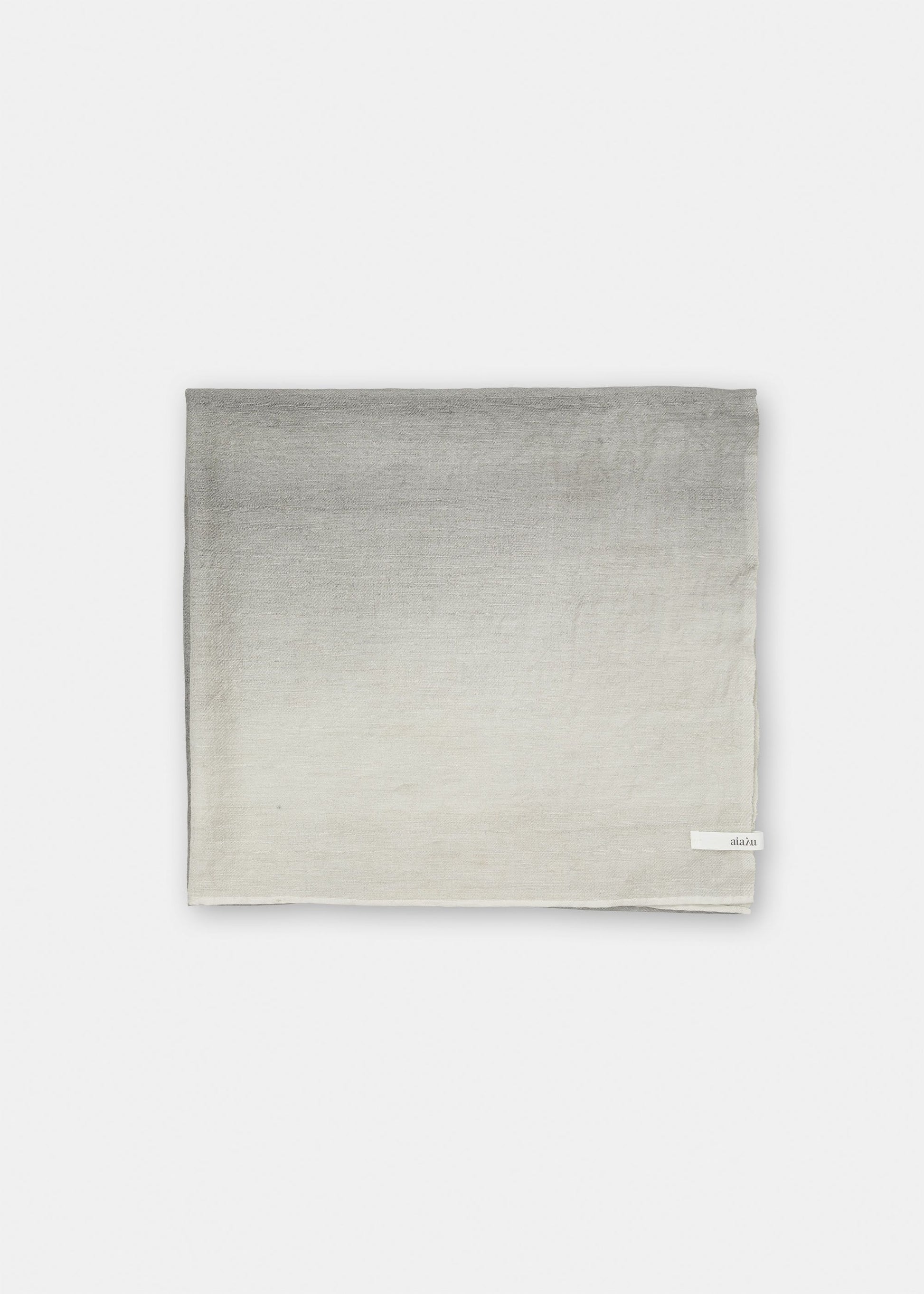 Aiayu skriver; Hedda is a dip dye scarf made in a luxurious blend of cashmere and silk, hand-loomed by artisans in Nepal. The scarf is square, and the edges on two sides are finished with a hand-stitched silk bias binding, while the other two are kept raw.