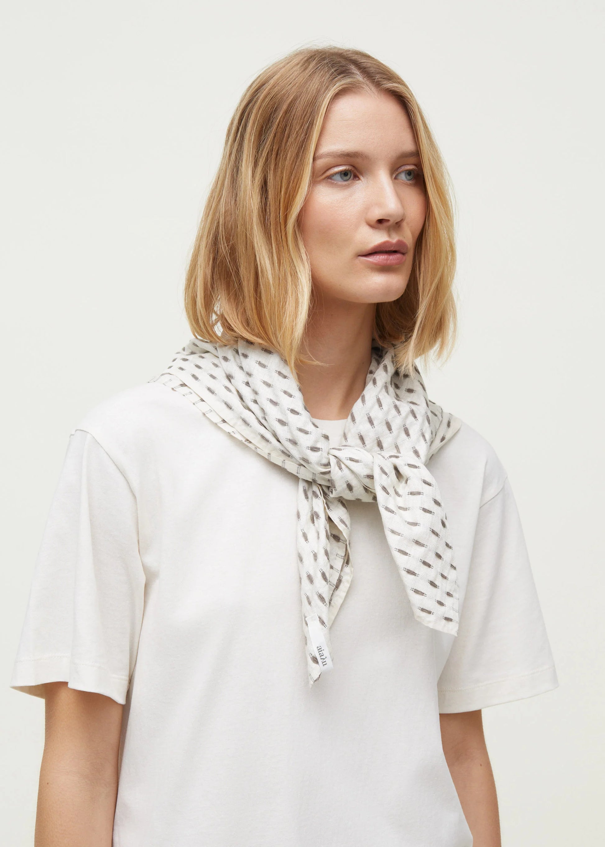 Aiayu skriver; A soft, square shaped scarf with elegant cashmere details. Made from silk and hand-spun cashmere.