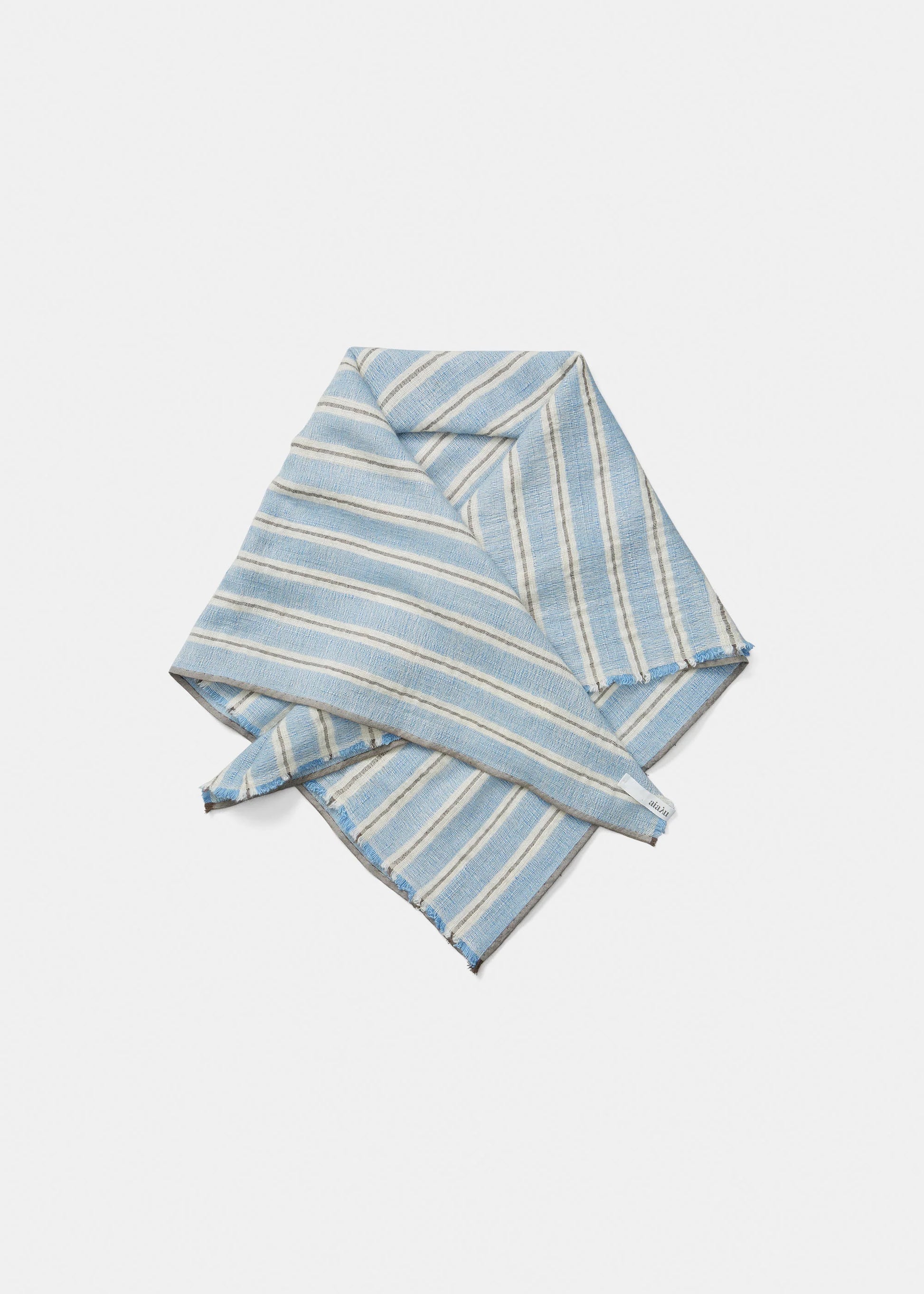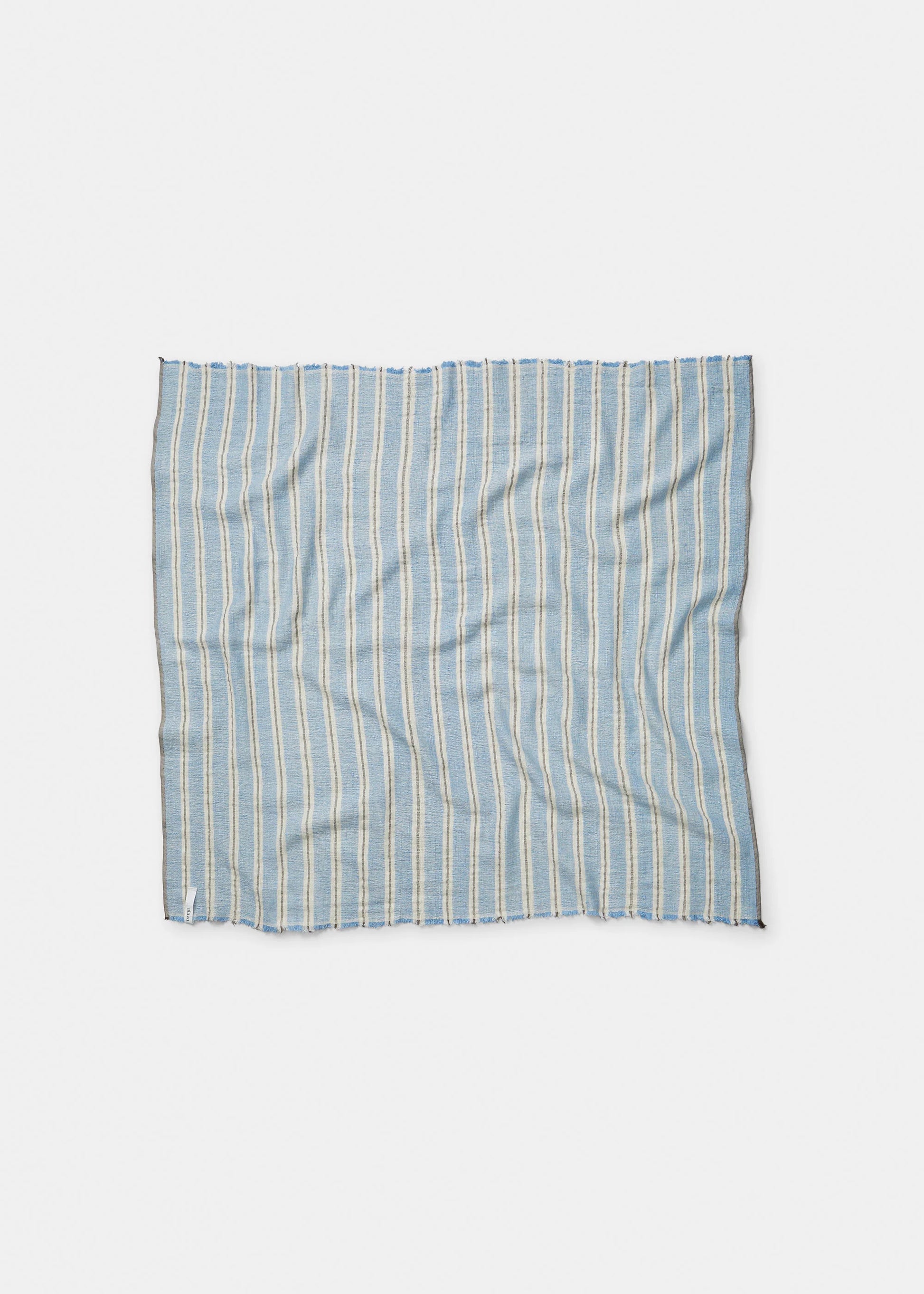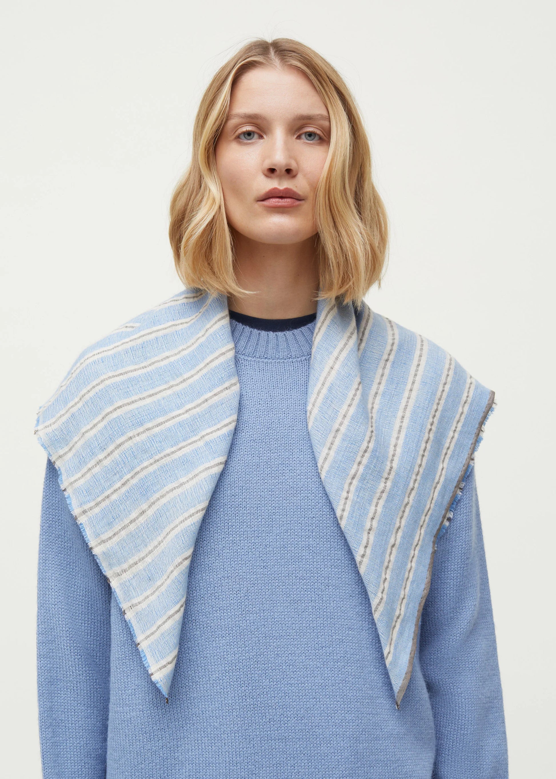 Aiayu skriver; A soft, square shaped scarf made from silk and hand-spun cashmere. The scarf is designed with elegant stripes in a delicate colour palette that presents a chic look.