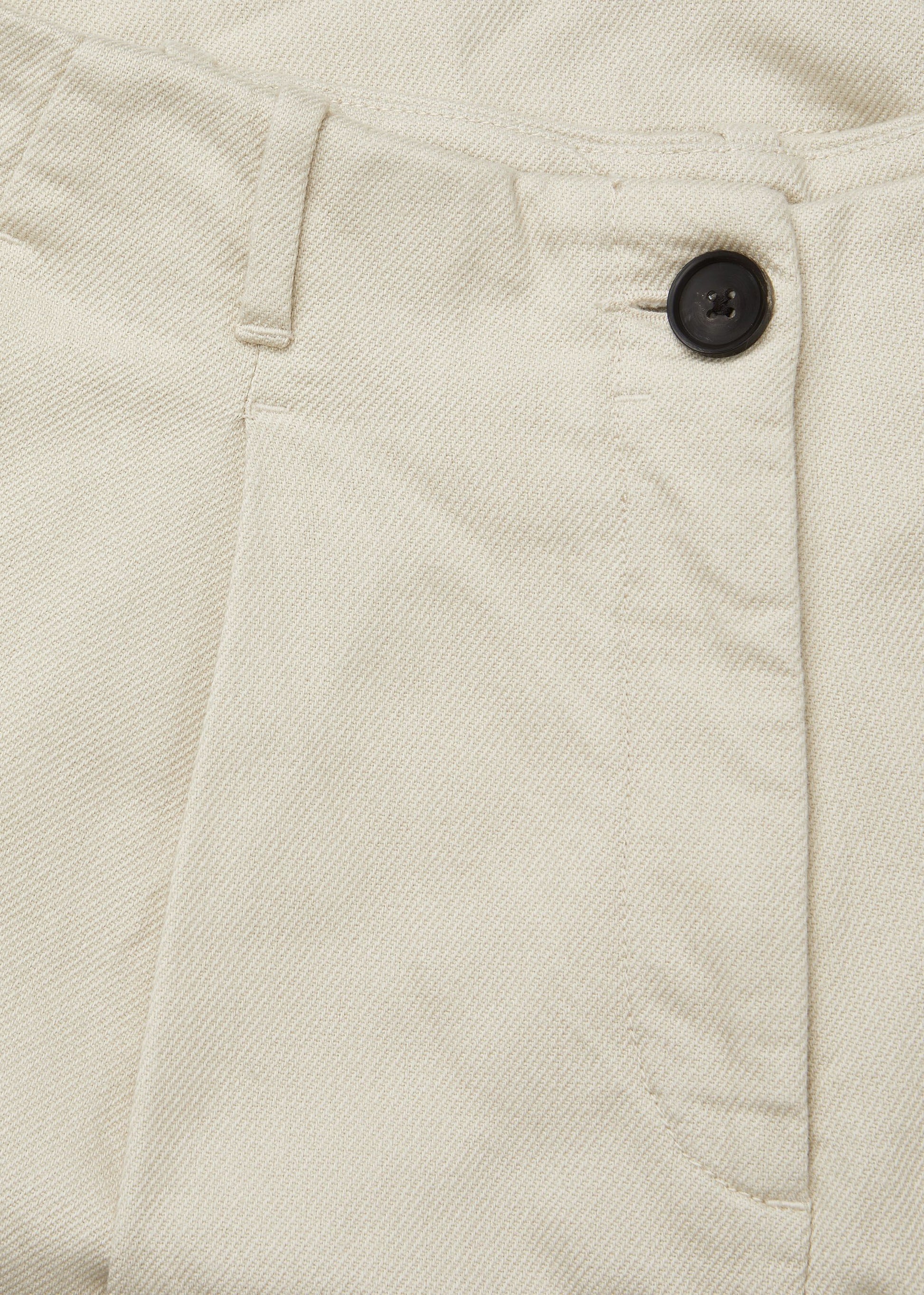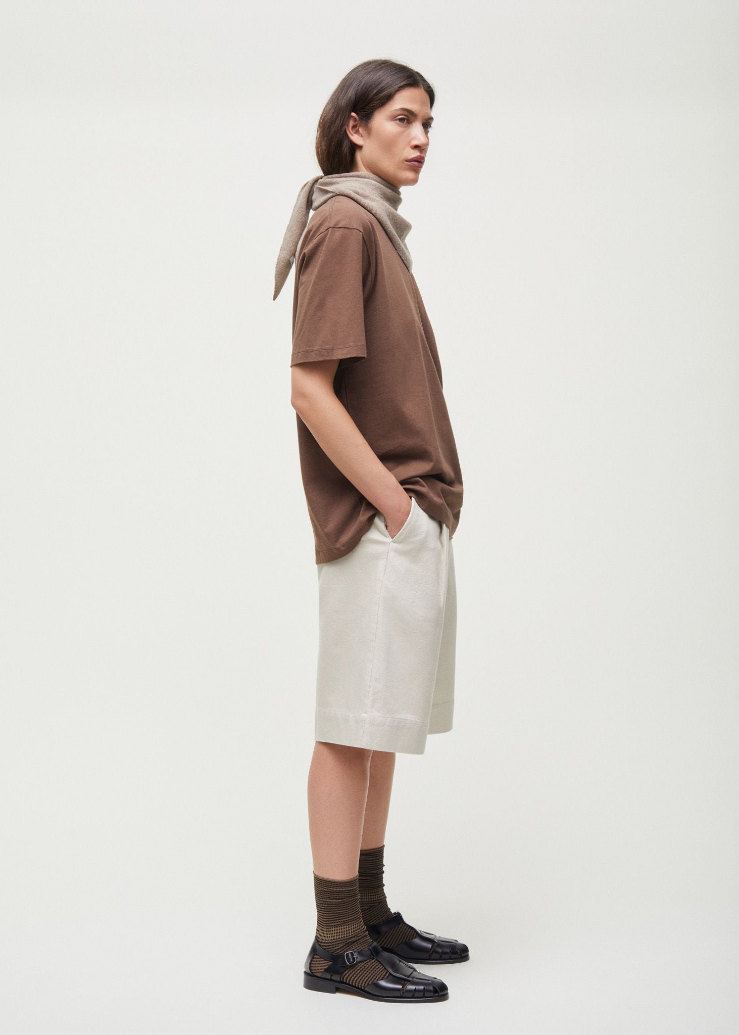Aiayu skriver; Bermuda-inspired shorts with a tailored look, made in heavy 100% organic Chetna cotton. Willy features an invisible waistband with belt loops, slanted pockets and pleat detailing. Willy comes with contrast-coloured handmade horn buttons. Complete the look with Florian Jacket.