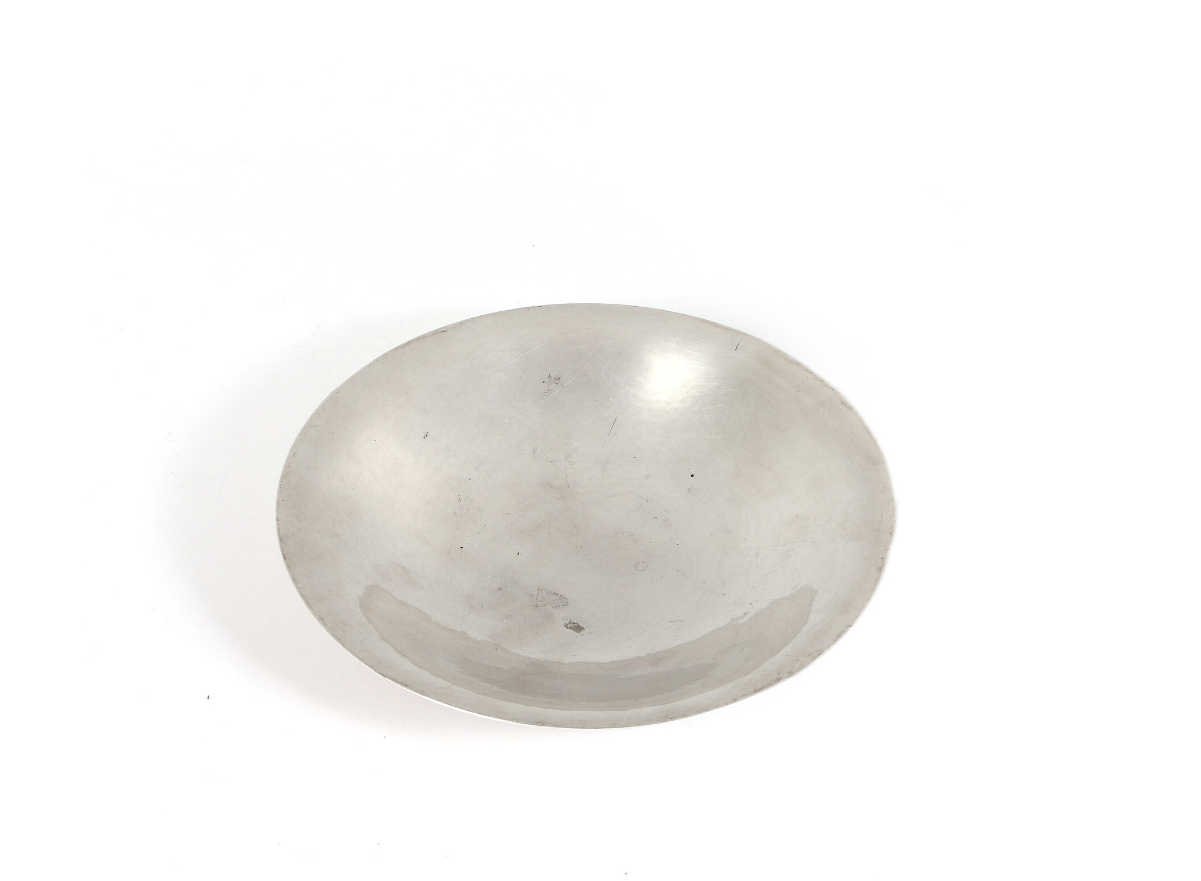 Skålen er utarbeidet fra en plate sterlingsølv og hammerslått av sølvsmed før lodding og tilpassing av fot.
