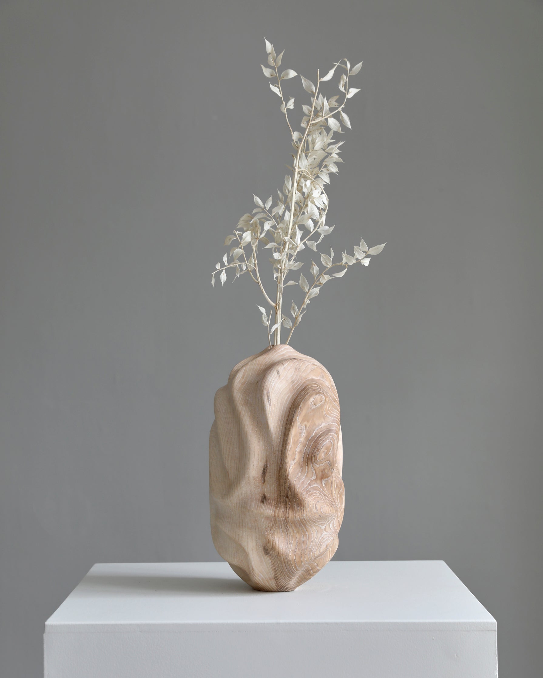Håndskåret gammelt asketre fra Vestfold. Tidkrevende prosess etter at preparert emne er tørket riktig i 3-4 år.