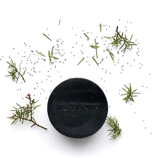 Munio Juniper Organic Scrub Soap Bar is a scrub soap for hands. The perfect stroll through a pine forrest. A wooden pine scent with a hint of fresh flowers. Fragranced with pine, laurel leaf, black seed and lime oils. Highly moisturizing scrub soap bar made from organic oils and organic sugar with charcoal and poppy seeds. Made of 97% COSMOS certified organic ingredients.
